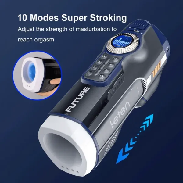 • Experience a range of sensations with the Leten 708 Future Pro, offering 10 adjustable modes, including stroking and airbag massage, designed for a tailored and immersive experience.for those seeking an advanced automatic male masturbator